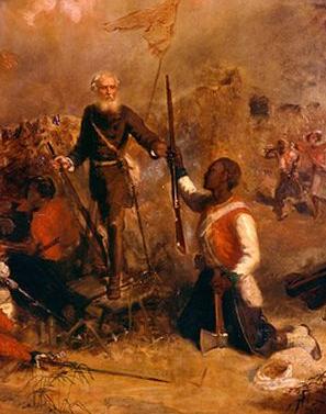 Private Samuel Hodge, 4th West India Regiment, winning the V.C. at Tubabakolong, Gambia, 1866. (Wikipedia)