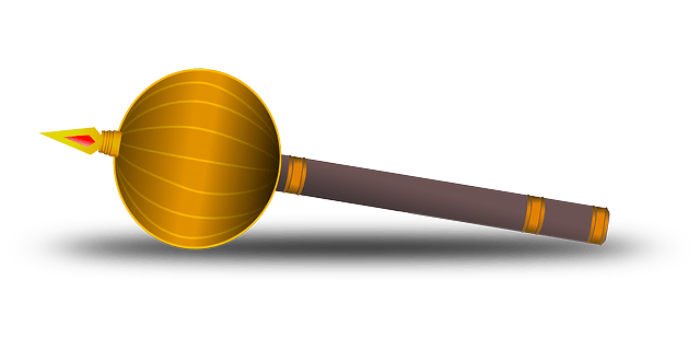 A scepter is defined as a rod held in the hand as an emblem of regal or imperial power. (Dictionary.com)