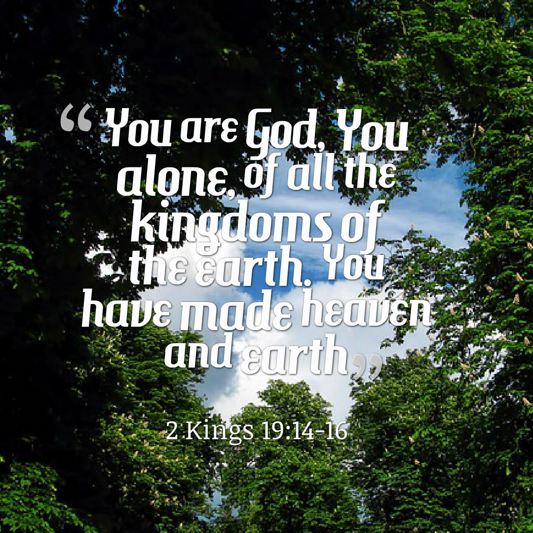And Hezekiah received the letter from the hand of the messengers and read it, and Hezekiah went up to the house of the Lord and spread it before the Lord. Then Hezekiah prayed to the Lord and said: “O Lord God of Israel, the One who dwells between the cherubim, You are God, You alone, of all the kingdoms of the earth. You have made heaven and earth. Incline Your ear, O Lord, and hear; open Your eyes, O Lord, and see; and hear the words of Sennacherib, which he has sent to reproach the living God. (2 Kings 19:14-16)